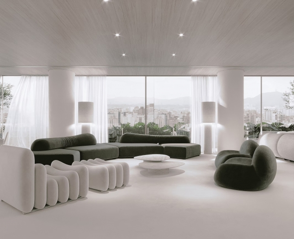 El vasto espacio social integrado está diseñado para concebir las vistas de la ciudad al tiempo que fomenta el movimiento natural en todo el apartamento.