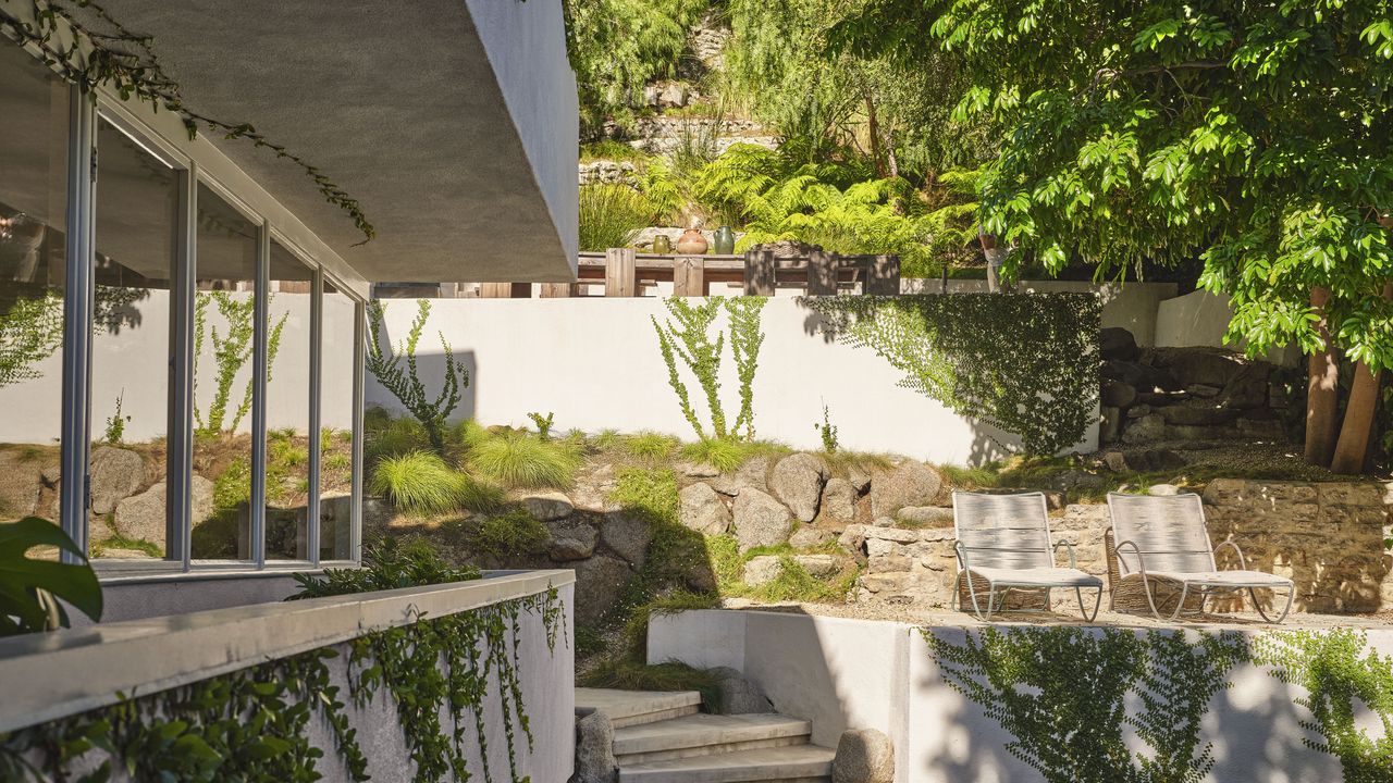 El componente principal de la revitalización de la propiedad es el nuevo diseño de paisaje de Case Charles Fleher Área de trabajo escénico. «Era una ladera estéril cuando nos mudamos», recuerda Seigal. «Ahora, cuando te sientas en la sala de estar, te sientes como un oasis afuera».