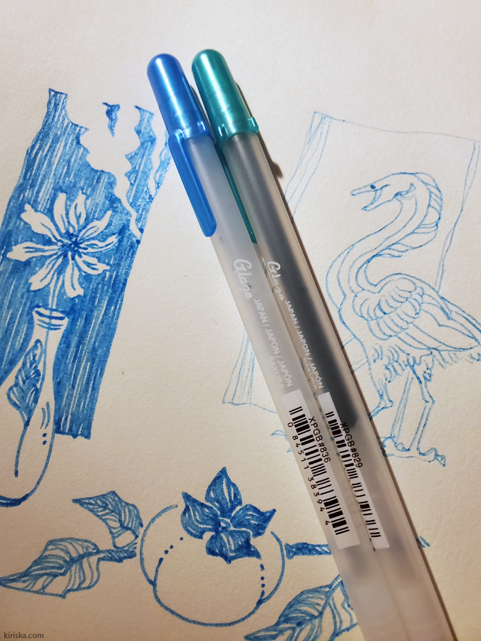 De todos modos, aunque la calidad «3D» propuesta no es tan prominente como recuerdo, la tinta es suave y brillante. Este efecto no es muy obvio en los cuadernos de bocetos con papel texturizado. Cualquier volumen regular de Gelly hace el mismo trabajo aquí. Sigue siendo una pluma interesante.