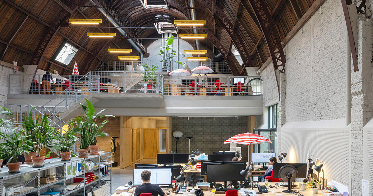 Visita en Amberes, Goodwin b-arquitectoshay 60 personas que practican en un estudio que abarca 1200 metros cuadrados. El equipo ocupó dos espacios históricos: en cualquier lugar, una vez un fabricante de fábricas de diamantes, y B-Cinema fue el primer edificio en Amberes, construido específicamente como un cine en 1913. Desde que se mudó a B-Cinema en 2024, la compañía ha destacado una cultura de oficina que inspira la creatividad y refleja su identidad impulsada por el diseño.