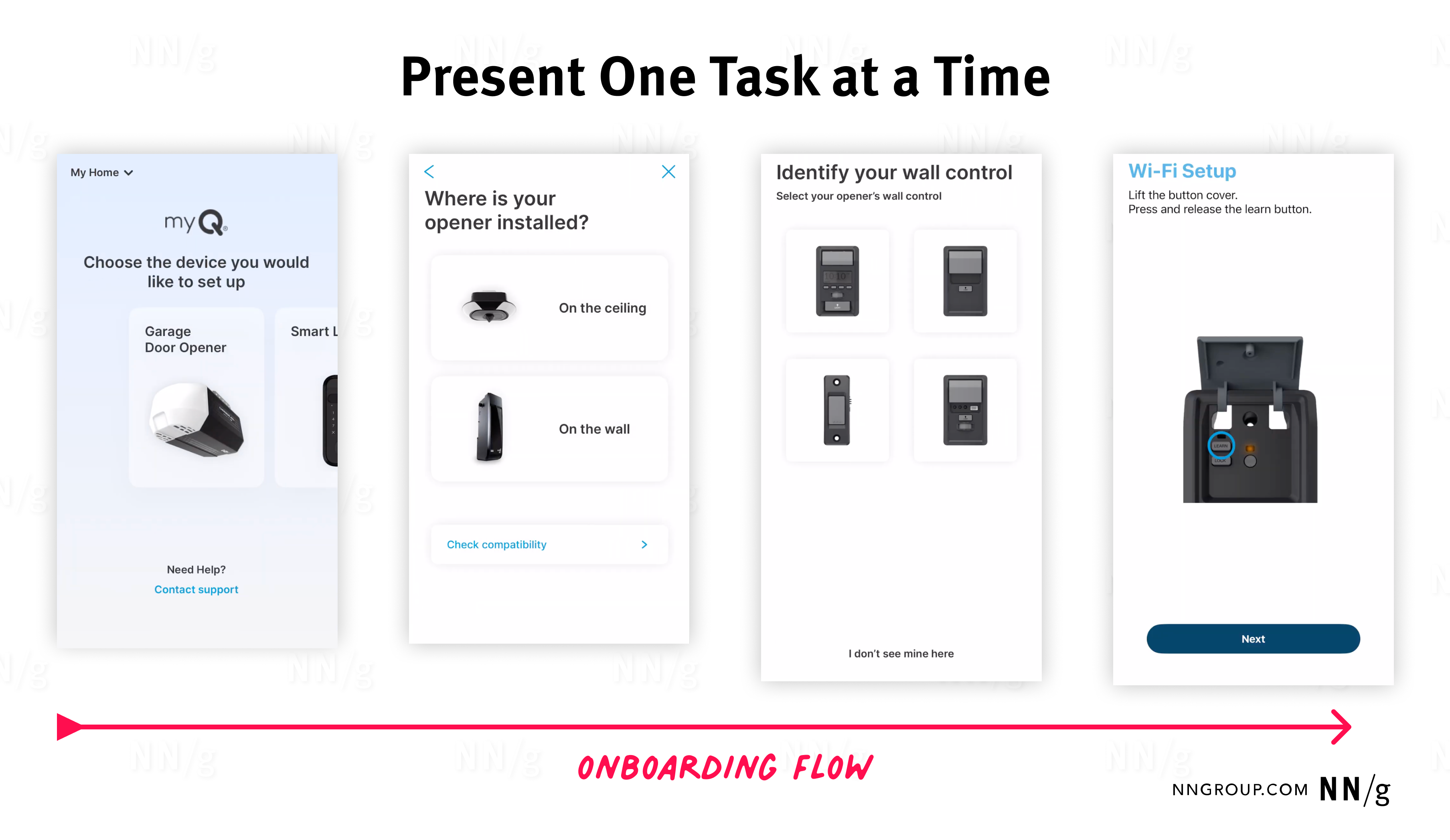Las aplicaciones de dispositivos inteligentes deben proporcionar flujos de incorporación claros y fáciles de usar para evitar que los usuarios se den por el dispositivo antes de comenzar a usarlo.
