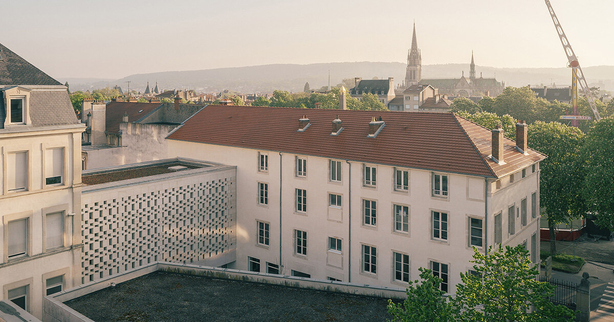 En el campus de Carnot-Ravinelle en Nancy FranciaAgence Vulcano-Gibello completado arquitectura La facultad de derecho se encuentra, una estructura que puede remodelar la circulación y darle a la universidad una nueva presencia dentro de la ciudad. uno Hormigón de piedra caliza La galería ancló el proyecto, reemplazando un edificio antiguo, que ahora conecta las áreas académicas circundantes mientras orientó el complejo hacia la revitalización patio jardín.
