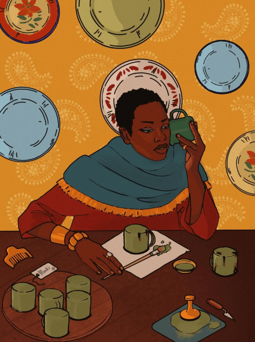 Para Mokgosi, el arte es inseparable de la identidad. Cuando era mujer de Karanga, intenta capturar Formas modernas de cultura sevannafiltrando sus tradiciones materiales y visuales a través de su propia perspectiva. Muchos de sus obras coinciden con los símbolos cotidianos, especialmente el software de esmalte que durante mucho tiempo ha sido un elemento básico de las casas de Batswana. Estos objetos a menudo se pasan por alto y vuelven a aparecer en sus pinturas y los trabajos digitales como Tema divertido y caprichoso Llevando el nivel de memoria y significado.