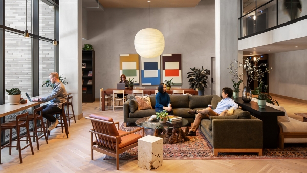 La zona de conveniencia pública abarca 8,500 pies cuadrados, integrando la salud, el ocio y los espacios de reunión en un entorno vertical cohesivo.