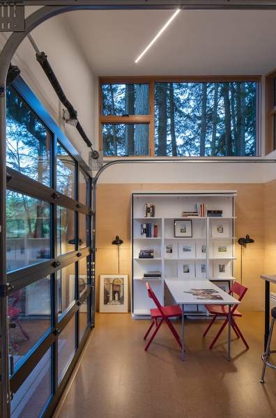 Las puertas de rodillos de estilo de garaje aislado en el cobertizo se abren hacia afuera, proporcionando un excelente flujo interior y exterior.