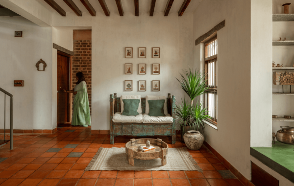 El contenido de la casa se aborda combinando e integrando muebles, mejorando así el espacio de parte de su espacio. El interior es simple, cómodo y práctico, y tiene una variedad de elementos que intentan lograr el objetivo: producir una vivienda cómoda, ser amigable y conectado con el exterior. El hecho se logra a través de aberturas y aceras con texturas de piedra, que pueden pasar a través de las casas interiores e interiores, así como el uso de colores neutros y madera cálidos para lograr el resto de la materia.