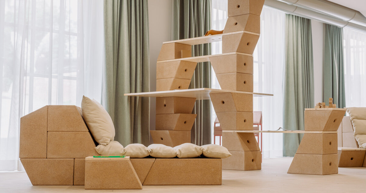 Los muebles de pino de corcho y pino modulares de Smarin fomentan el juego práctico