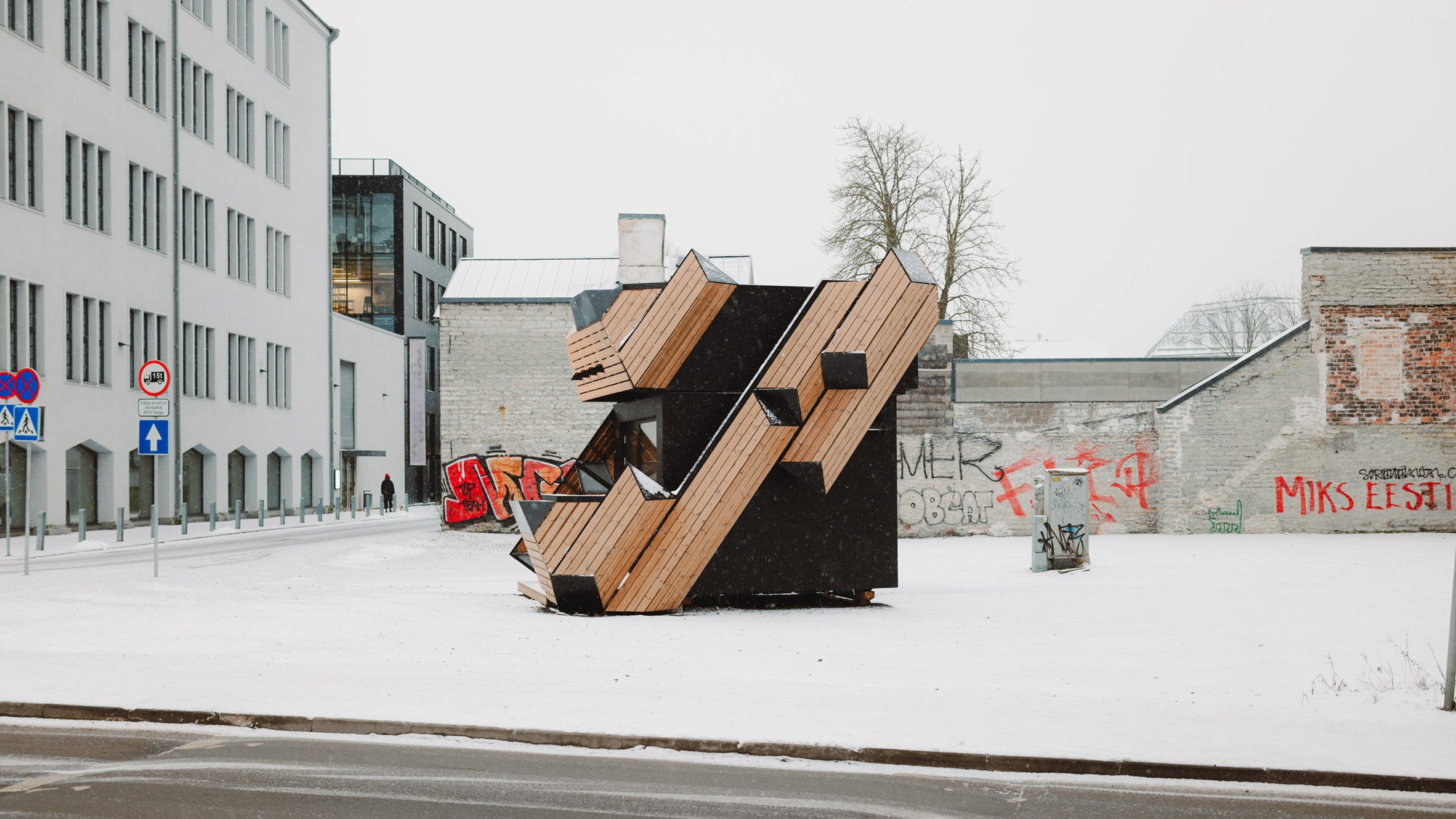 La estructura experimental es Paquete de eaaUn Centro de Investigación de la Madera dentro de la Escuela de Arquitectura de la Academia Estonia de Artes (EKA).
