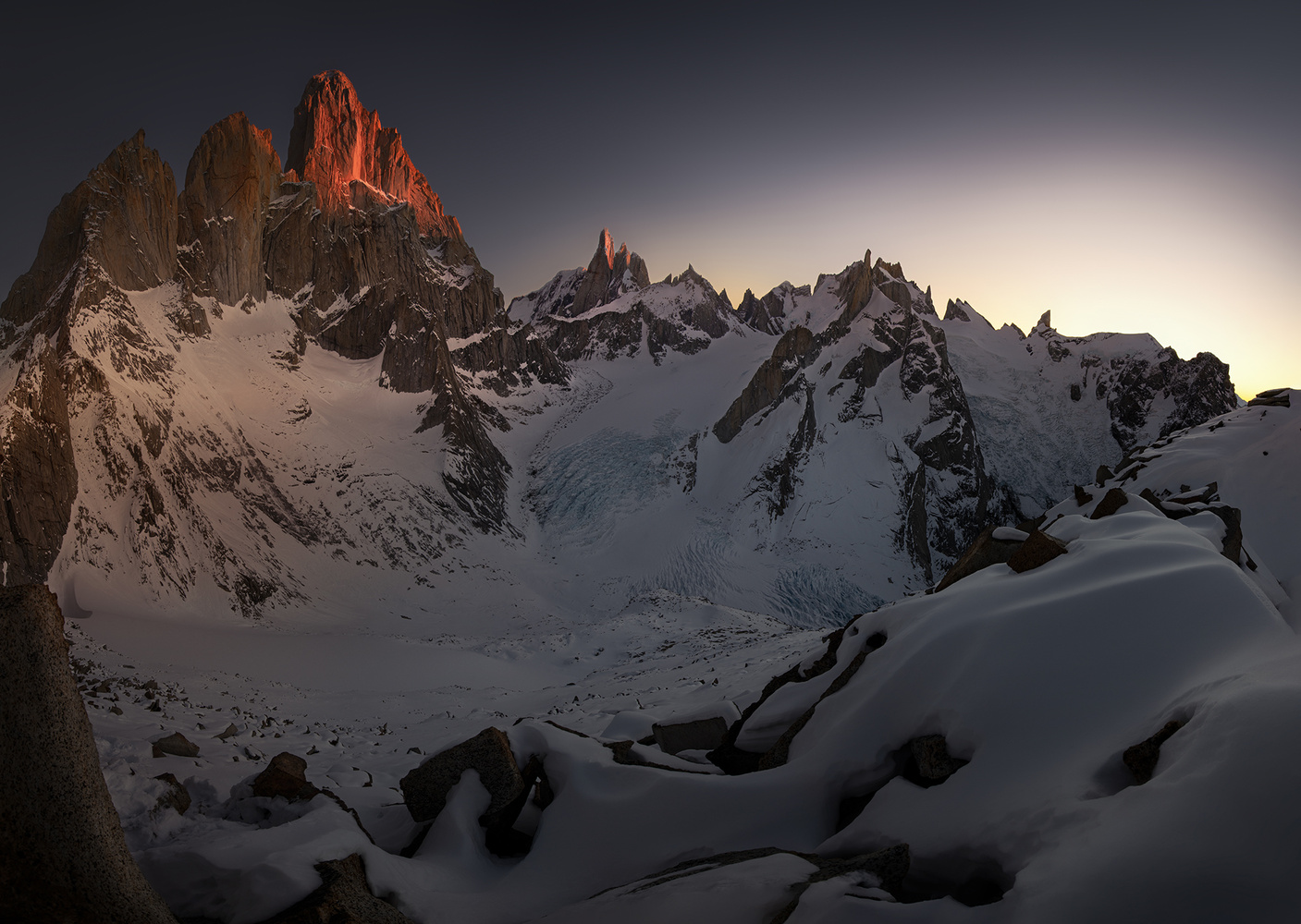 Si los fotógrafos se quejan del paisaje abarrotado de la Patagonia y las atracciones fotográficas limitadas que dificultan crear obras originales verdaderas, entonces esto puede significar que no están haciendo suficiente esfuerzo, tal vez no hayan caminado ni subieron subidas más altas para descubrir los paisajes que otros han explorado a fondo una vez. Solo al aventurarse en las montañas y ir más allá de la vista convencional puede descubrir la verdadera Patagonia.