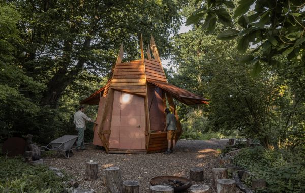 El triángulo dorado forma la pared exterior del estadio en Marruecos