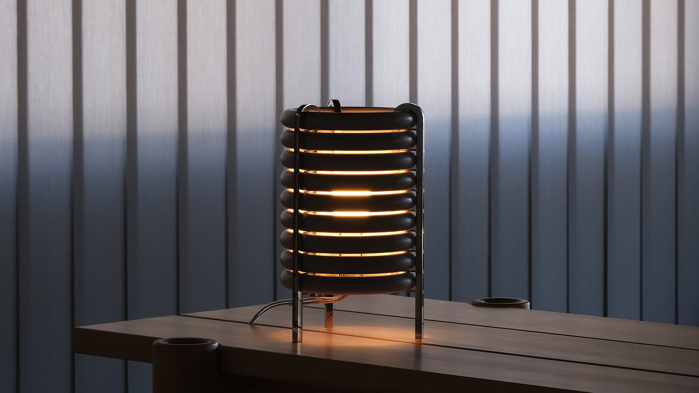 La lámpara WA de Akasaki y Vanhuyse hecha de viejas piezas de tren de Tokio