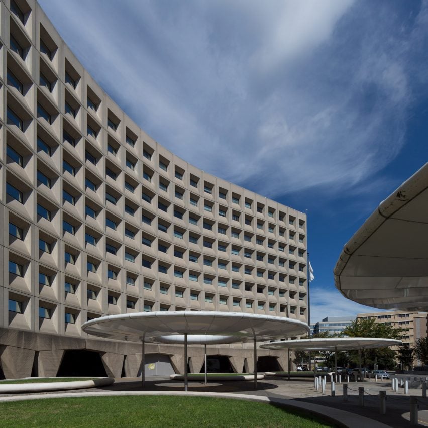 La foto de Marcel Breuer en el Edificio Federal Robert Weaver en Washington, D.C., fue tomada por Carol M Highsmith en el catálogo de la Biblioteca del Congreso.