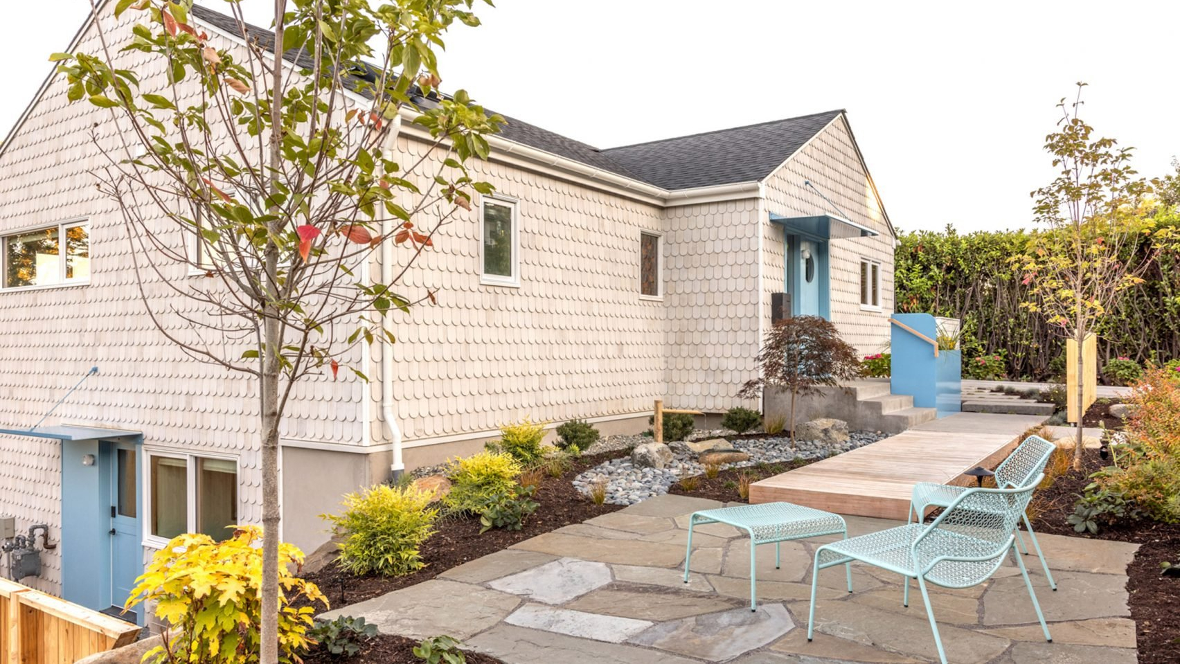 Arquitectura de las mejores prácticas Renovado una casa de los años 50 SeattleEl vecindario Mt Baker vive en casas multigeneracionales de madera Erupción de burbujas en forma de banda Cuenta con un apartamento de sótano separado.
