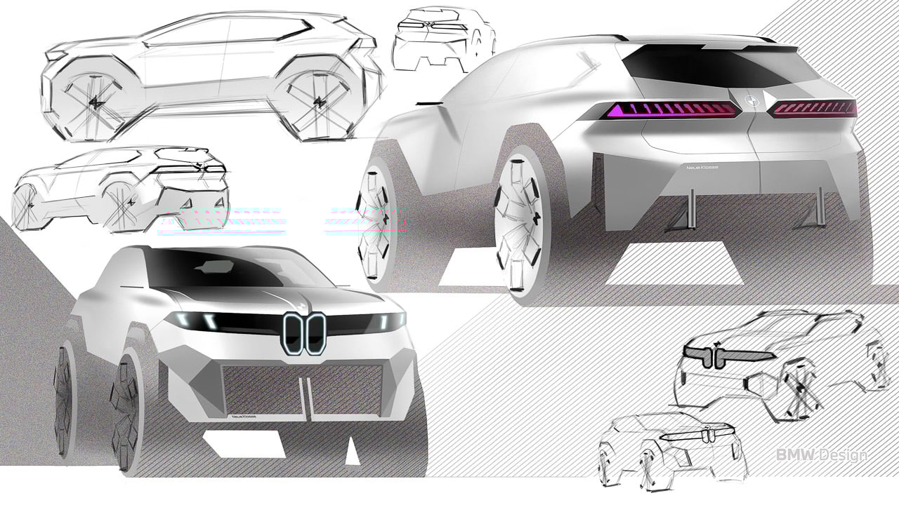 El BMW IX3 Neue Klasse se define por una verdadera escala SAV y un lenguaje de superficie simplificado que se lee limpio a distancias y distancias cercanas precisas. La nariz reemplaza el cromo con luz y usa un marco vertical para el orgulloso riñón en el delantal delantero. Los faros dobles crean una nueva expresión de cuatro ojos con su elemento vertical de carrera diurno que se inclina ligeramente hacia afuera y luego se rompen en superficies de luz horizontales adicionales que conducen el ancho visual hacia los riñones. El círculo rediseñado se encuentra en el valle del capó, con la línea central estampada que atrae los ojos a la rejilla.