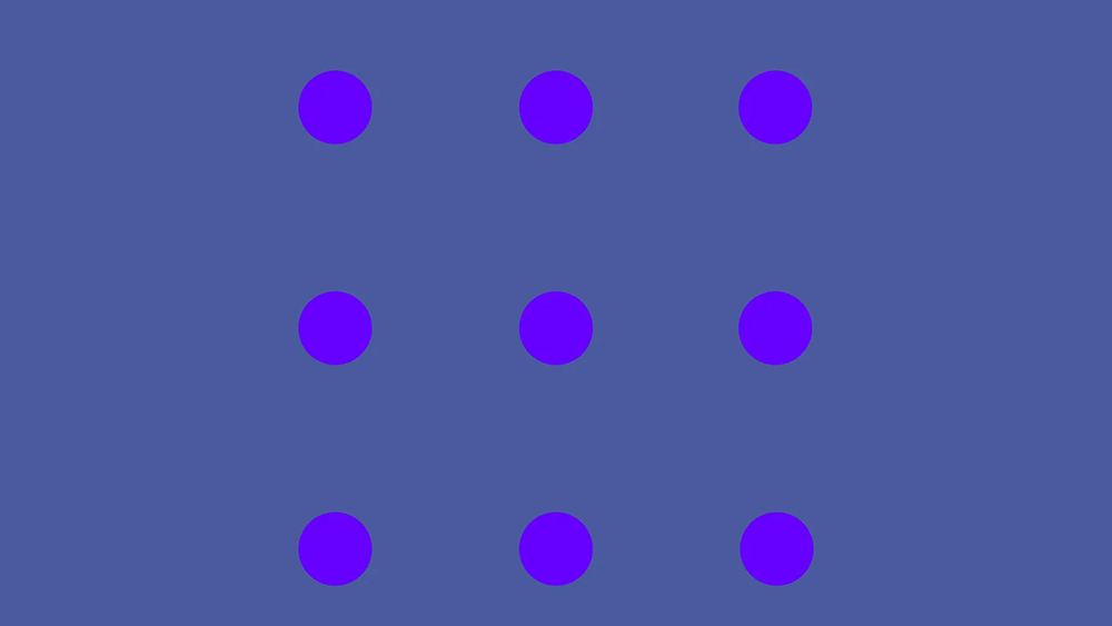 En la imagen compartida arriba, estos puntos son morados (Lista #6600FF o Purple eléctrico si queremos ser exactos). Como se señala, el True Blue será #0000FF. Pero la mayoría de los espectadores solo informan que solo ve su enfoque directo en los puntos morados, mientras que otros parecen convertirse en un tono más azul. Algunos incluso dicen que los puntos que no miraban se habían ido por completo.