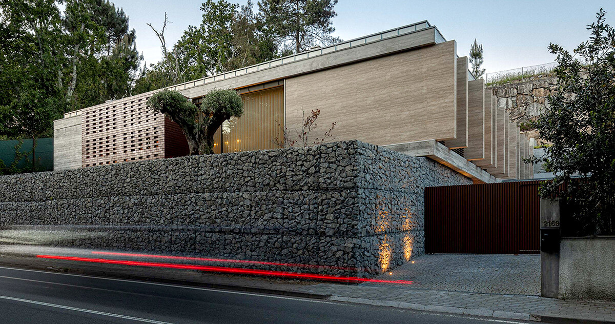 CL House pares paredes de gabion en Artequitectos, Travertine Fachade en Portugal