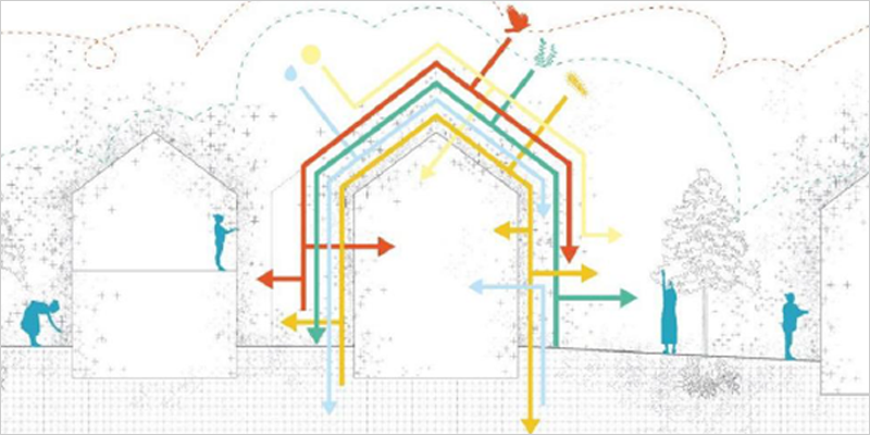 El proyecto promueve una transformación profunda en el diseño arquitectónico urbano, proponiendo no solo proteger las paredes y cubiertas exteriores del entorno natural, sino también integrando el entorno natural.