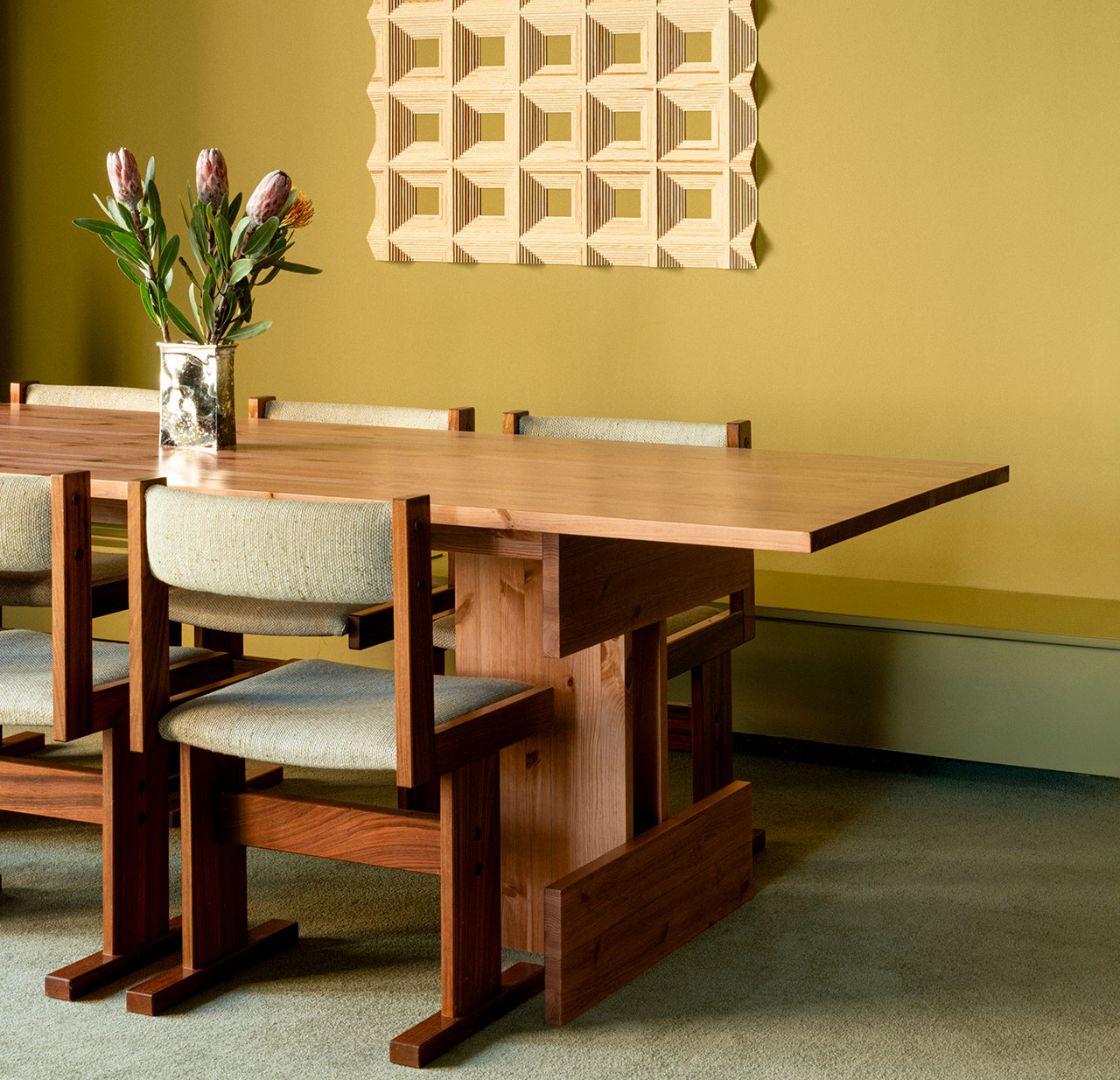 Afortunadamente, los estilos únicos de la era de hoy han vuelto a la popularidad y la relevancia. Lo que unió todo es un corredor monocromático que conecta el alojamiento con espacios de conveniencia espaciosos pero no abundantes. A lo largo del proceso, el sabor ligeramente cremoso es interceptado por los muebles de madera de tono medio y la superficie de acento rojo de la tela de carne. El mismo tono atraviesa las paredes de baldosas y los muebles audaces, arruinando el salón de invitados verdes del jefe Sage.