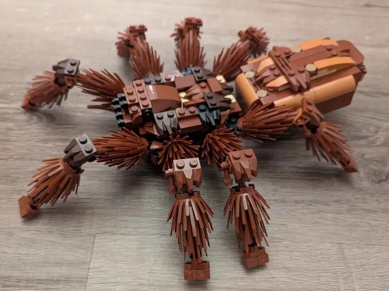 El verdadero dominio aquí es el uso en parte, que los fanáticos de LEGO llaman «NPU» o un buen uso de partes. Los constructores usan arbustos marrones ordinarios o rodajas de plantas para simular el cabello delgado que cubre las piernas de una araña lobo, llamada cerdas. Esta es una elección inspiradora. El trabajo en sí tiene picos, formas múltiples que crean una textura borrosa, casi peluda, cuando se colocan en capas repetidamente a lo largo de las piernas, imitando perfectamente la cosa real (una imagen de primer plano a continuación). Esta es una aplicación inteligente y lista para usar de elementos existentes que elevan todo el modelo de representaciones simples a esculturas detalladas. Es una solución creativa de resolución de problemas que define los mejores ladrillos LEGO personalizados.