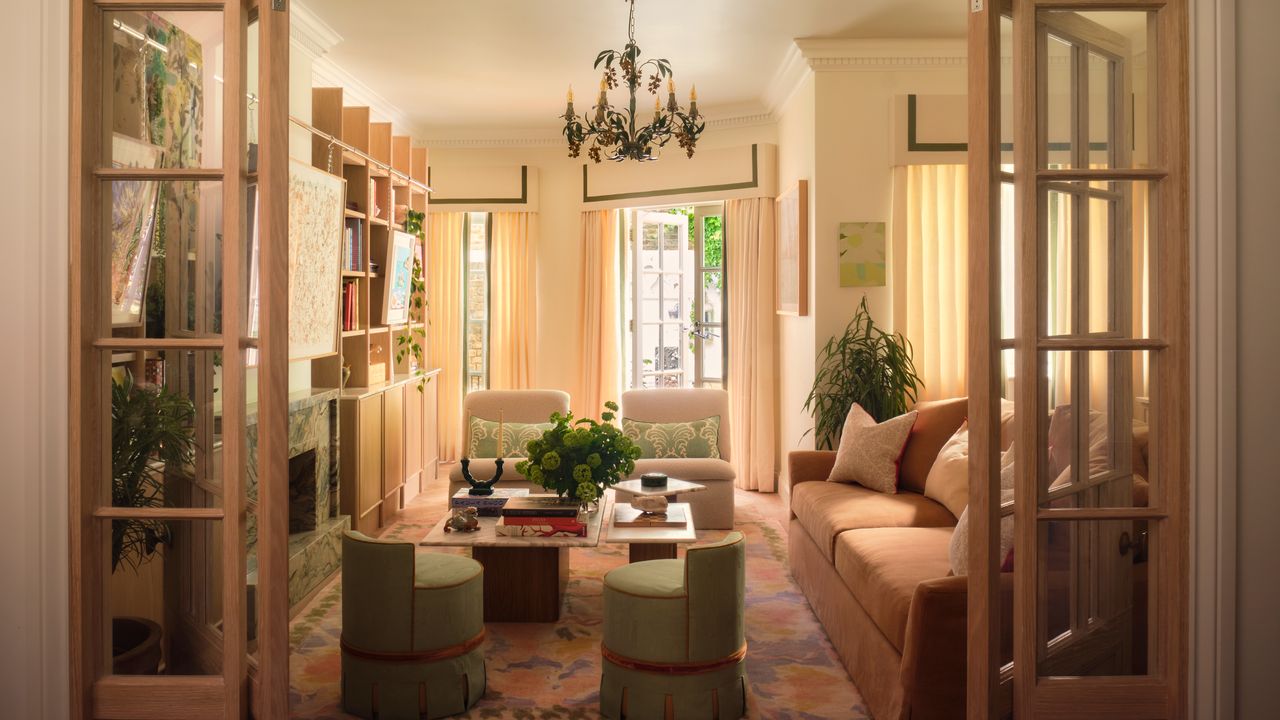 El cliente, una pareja joven, «increíblemente despreocupada» de los Estados Unidos, refleja su personalidad por casualidad: colores luminosos y luminosos y luminosos y mucha luz natural. El primer paso es cambiar el diseño de la antigua casa. Para abrir la sala de estar, las puertas dobles existentes fueron retiradas y reemplazadas con paredes de partición de vidrio e inundaron todo el vestíbulo con luz natural. La cocina también ha sido completamente renovada y ahora brilla en un lugar cálido. Amarillo mantecoso. En el restaurante, Rigby agregó una unidad de pared de arena que revela la barra azul cobalto.