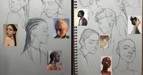 Fotos con bocetos y varios dibujos de celebridades