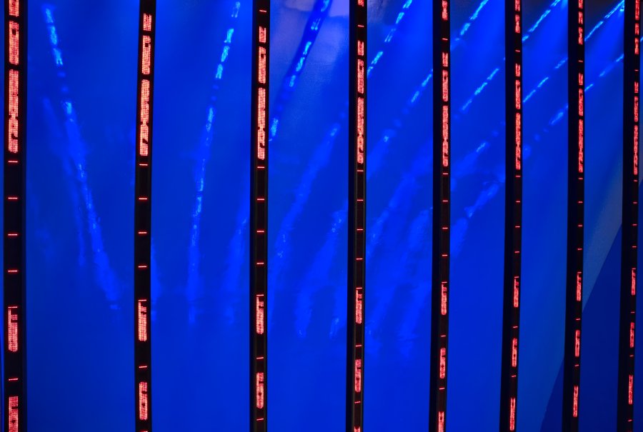 Detalles de la instalación de arte de Jenny Holzer en el Museo Guggenheim en Bilbao, España.