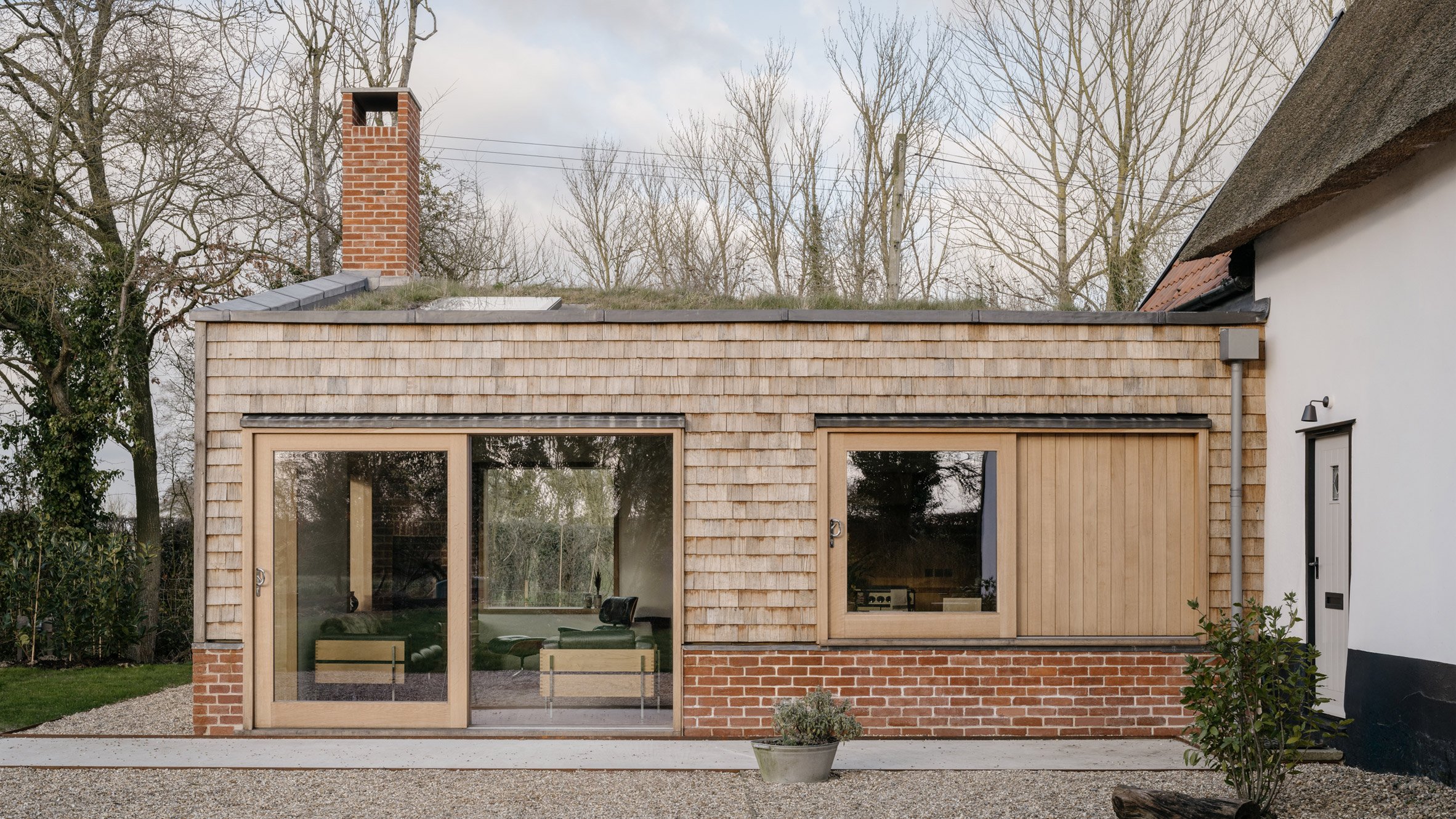 Además de la unidad de sus diferentes elementos, el estudio agregó un ala al extremo noroeste de la casa, que se levantó en la base del ladrillo rojo Suffolk. El estudio lo describió como una «apariencia peluda de tejas» que asiente con la cabeza al techo de paja de la cabaña.