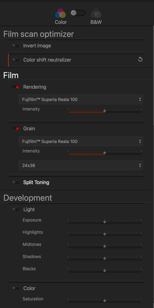 Una nueva herramienta de optimización de películas de escaneo permite a los fotógrafos trabajar con películas de escaneo en el hogar. Con un solo clic, el fotógrafo puede revertir los valores de tono de color o películas en blanco y negro y hacer correcciones precisas utilizando más de 10 preajustes de curva de tono dedicado. Estos incluyen soluciones específicas para problemas comunes de cambio de color y densidad que ayudan a los usuarios a recuperar y mejorar la película de escaneo de manera precisa y fácil.