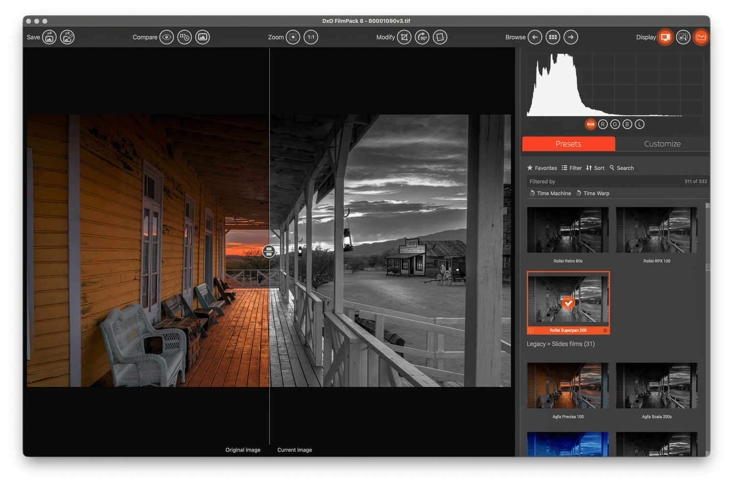 DXO actualizó su paquete de simulación de película a la versión 8, una actualización importante. Esta última edición presenta dos características sobresalientes: Time Warp Mode, una nueva forma de interactuar con el pasado de Photography y completamente integrado con Adobe Photoshop, dando a los fotógrafos acceso directo a la paleta creativa de Filmpack.