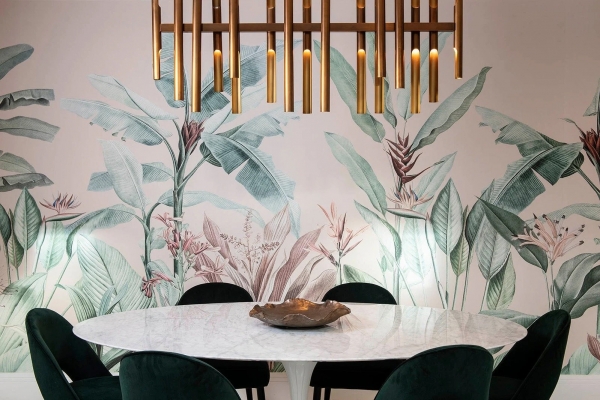 El papel tapiz de estilo tropical agrega un sabor biológico juguetón al corazón de la casa e infunde el color y la energía del interior.