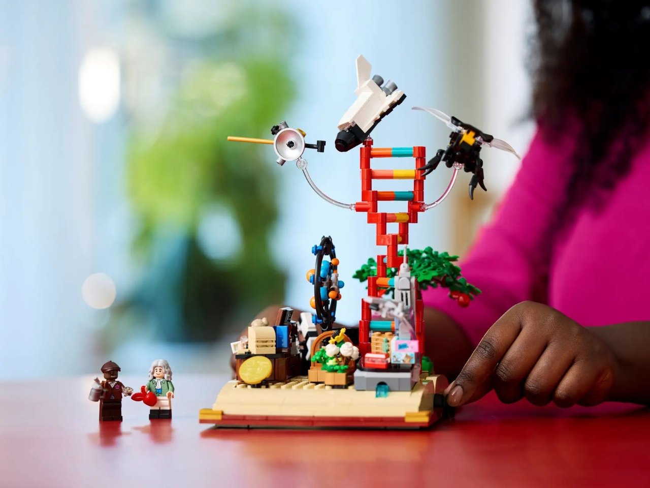La colección para adultos presenta varios mini construcciones que celebran la innovación. Puede construir un automóvil temprano, la versión más temprana de la computadora doméstica y un detector de Voyager de la NASA con registros dorados y más. También hay elementos interactivos, como réplicas 3D de átomos de carbono que flotan hacia arriba, mientras que los hilos de ADN giran simplemente girando el dial. Además, un mensaje de código Morse está oculto en la compilación. Algunas mini construcciones que puedes crear incluyen los manzanos de Newton, los camas de plantas de Carver, transbordadores espaciales y brazos robóticos.