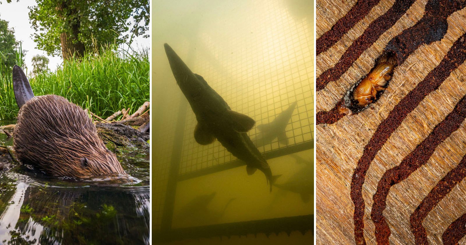 Entre las entradas muy aclamadas se encuentra Christian-D. El lobo de Morawitz recuperó un paisaje minero con cicatrices en Alemania, el retrato submarino de Marijn Heuts es un retrato submarino de un castor que forma su hábitat y un primer plano del escarabajo de corteza de Jonathan Fieber, ilustra la resistencia de los ecosistemas forestales naturales. Todos enfatizan la capacidad de la vida silvestre y los procesos salvajes para recuperarse cuando tienen la oportunidad.