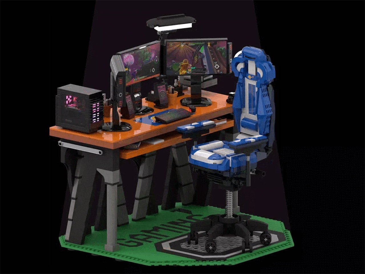 Esta plataforma de juego LEGO de 1.836 piezas incluye 3 monitores y una silla de juego ajustable