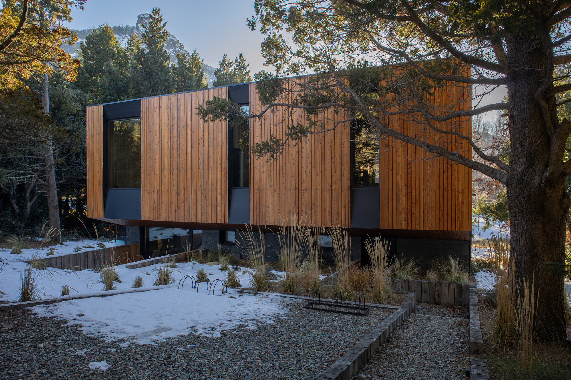 En comparación con la naturaleza orgánica del medio ambiente natural, la casa se considera una caja de madera apoyada por el suelo. Actualice a través de una ruta ligeramente descendente, transición gradualmente del espacio abierto al contenido interno. En el corazón del proyecto se encuentra el distrito social, diseñado para promover diferentes momentos de reunión: la chimenea hundida, la sala de estar, el comedor y la cocina, todo integrado en un área común.