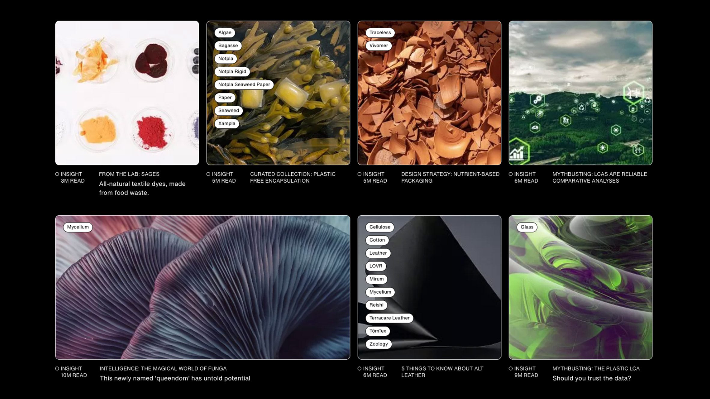 Desde entonces, la biblioteca de materiales ha seguido creciendo y respalda el lanzamiento de la innovación de productos, incluida La empresa con sede en Londres, «PipePter de belleza de compost mundial» con sede en Londres « y Entrenador purificado sin plástico.