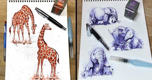 Luis González Dibuja todos los animales que ves en esta página. Aquí está la sección de la página del artista IG: «Giraffe Pen Ink … Esto completa el conjunto de la serie de la jungla …»