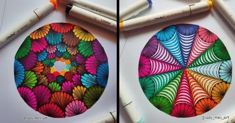 Mandala es una forma de arte antigua basada en el modelo concéntrico. En los últimos años, artistas como Lady Meli han estado probando este cambio de estilo. Algunos mirados y patrones son similares, pero el diseño es diferente. La esencia permanece. Puede ver que se basan en este arte, incluso si la ejecución puede hacer que se vean muy diferentes.