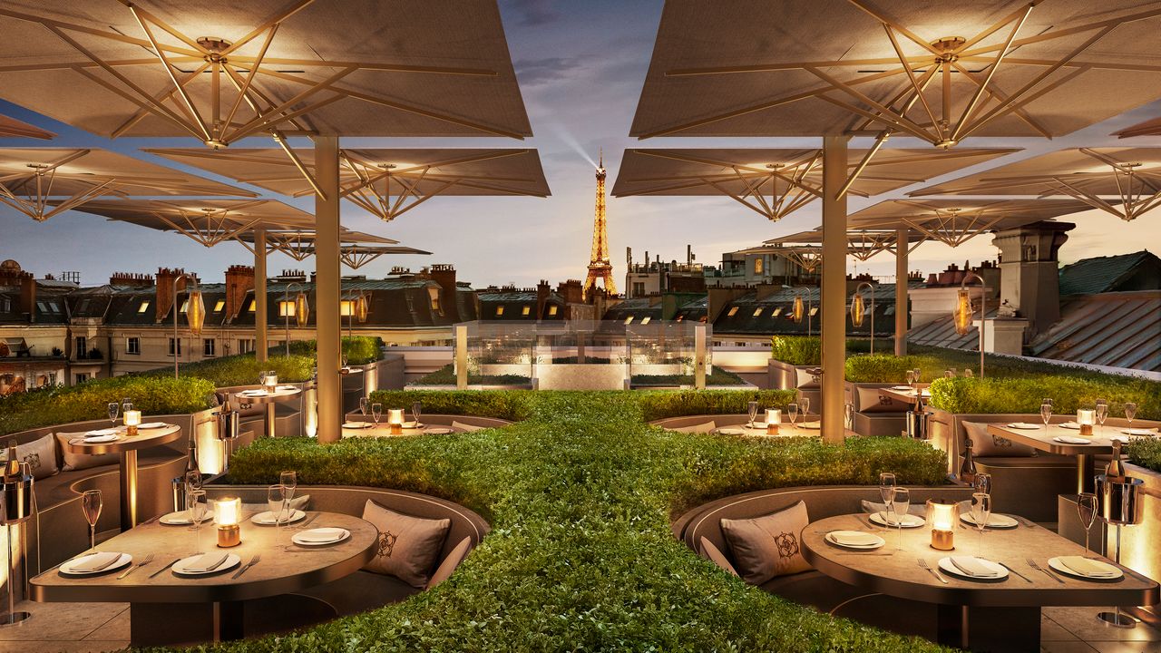 En París, los socios de Foster + son responsables no solo del mecanismo de techo inteligente, sino también de la mejora del edificio histórico del edificio. El edificio fue construido en 1983, anteriormente Abercrombie & Fitch, es uno de los pocos edificios independientes de los Campos-Elysées. El edificio tiene pisos en espiga, techos dorados, bronce de veinte pies de altura y puertas metropolitanas fundidas y puertas de hierro de hoja de oro protegidas por el patrimonio.