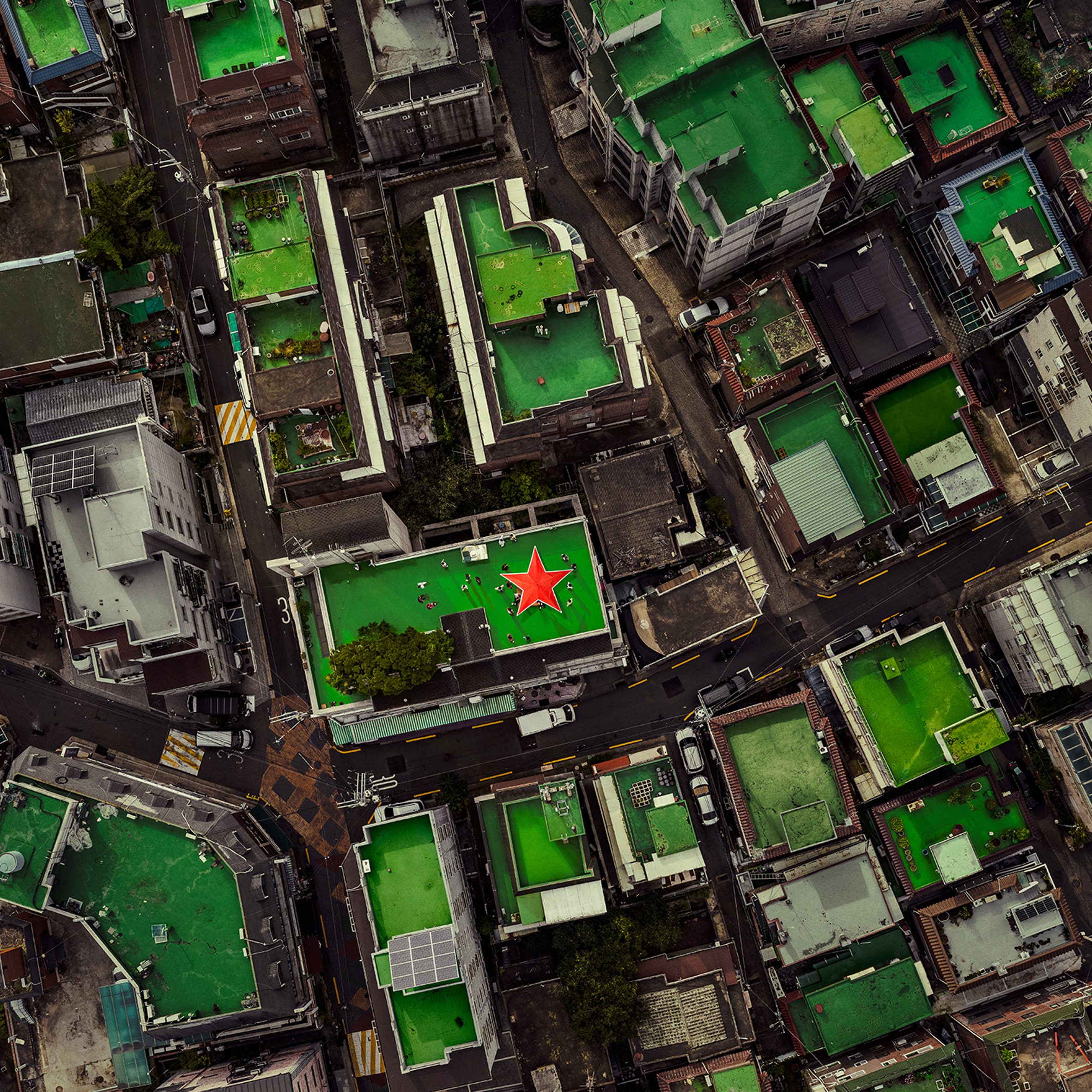 este coreano La capital también tiene una gran proporción de techos planos que subutilizan el verde.