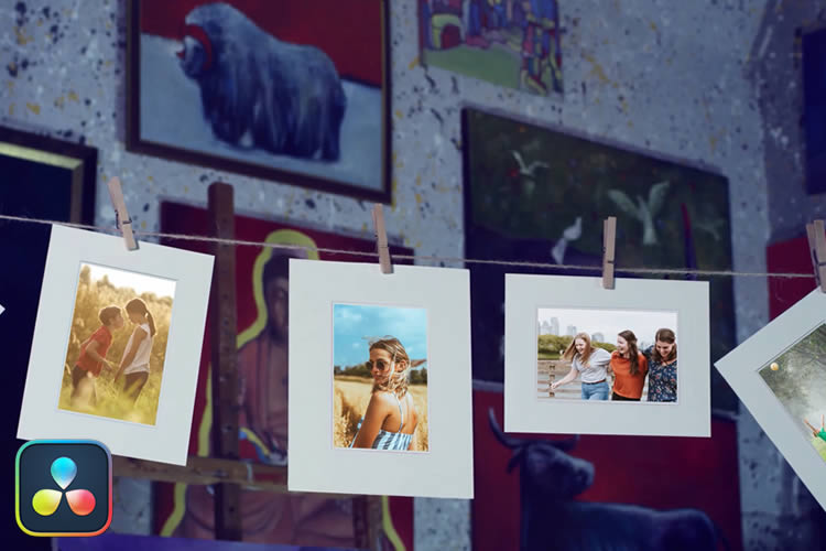 Esta es una forma divertida de mostrar sus fotos. La plantilla incluye una hermosa escena con imágenes colgadas de un tendedero. Este es un efecto único que permite a la audiencia hablar. Esto es ideal para álbumes de fotos familiares.