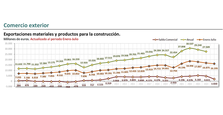 él Valor de exportación de materiales de construcción En España a 4% entre enero y julio de 2025,de acuerdo a Federación de Fabricantes de la Asociación Española de Productos de Construcción (CEPCO). Con este número, el departamento Cayendo durante veintisiete meses consecutivos.