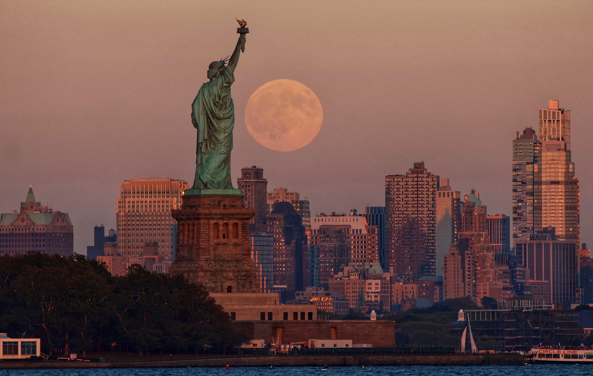 Ayer y el domingo, una gran superluna de la cosecha mostró un espectáculo para fotógrafos en la ciudad de Nueva York, ya que envolvía grande y brillante a través del horizonte de Manhattan.