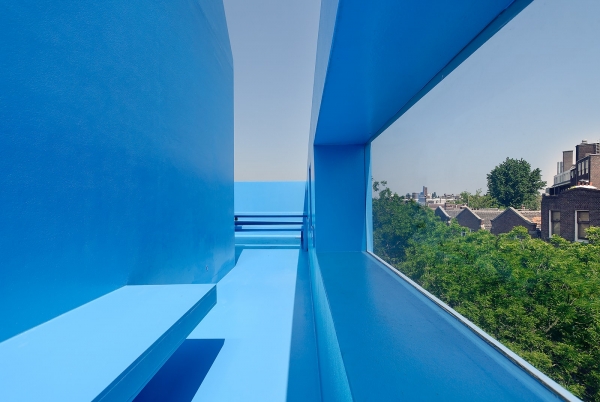 El primer proyecto de realización de MVRDV en Rotterdam transforma el techo de una casa histórica en una residencia azul vívida, reinventando la densidad urbana a través de la vida en la azotea.