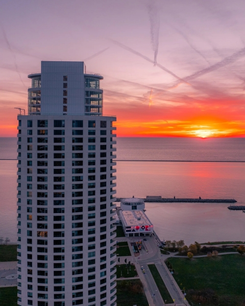 Dos áticos tipo loft en la azotea ocupan ubicaciones privilegiadas en lo alto de la torre de 44 pisos.