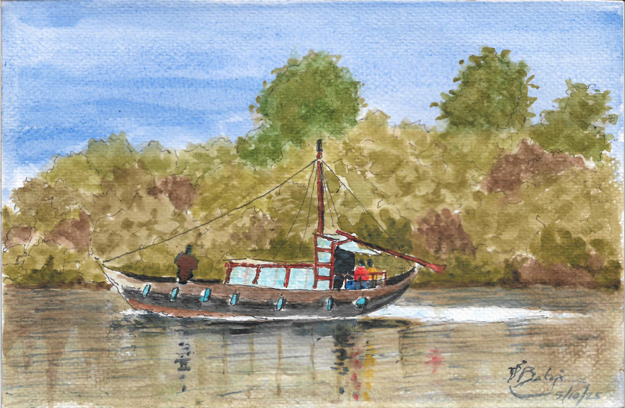Se trata de una acuarela de 21 cm x 14 cm sobre papel de acuarela Canson Graduate de 250 g/m². Agradezco a mi amigo Mani Krishnamurthy por permitirme usar sus hermosas fotografías de esta escena como referencia. Pero usé licencia artística para hacer algunos cambios en la escena.