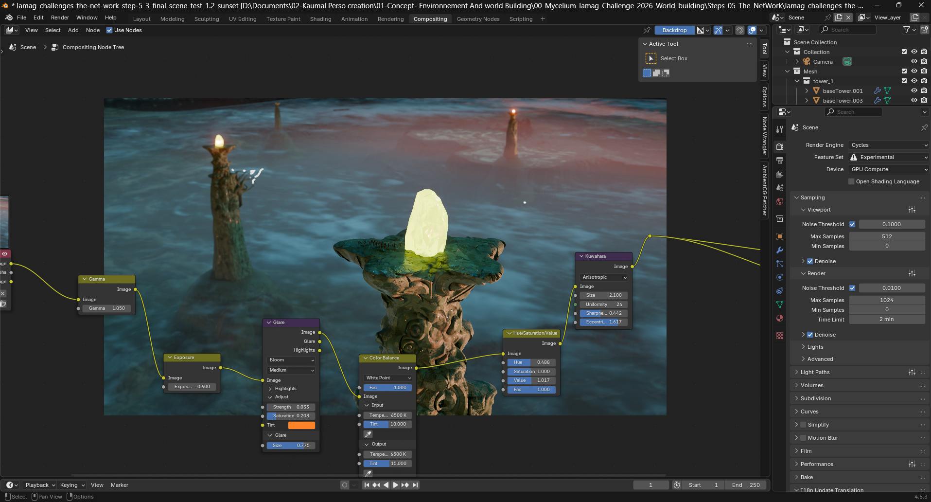 Proceso 3D (tallar esculturas y escenas nómadas en Blender): no la forma final, pero sí pasos interesantes