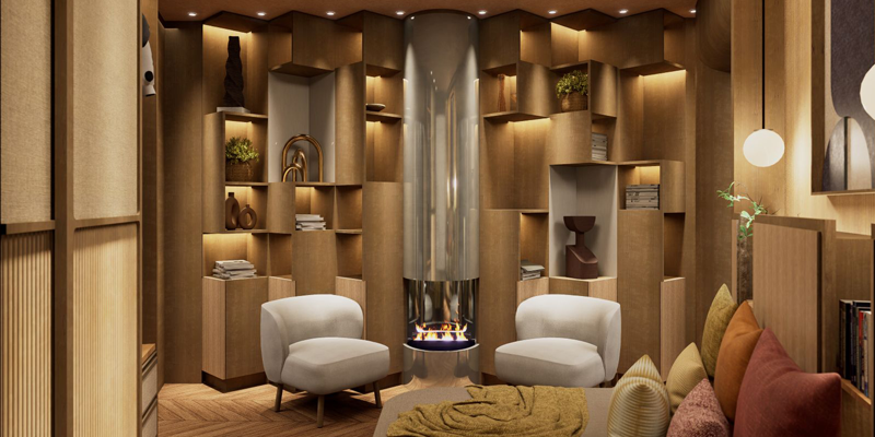 Diseñado por el estudio internacional DesignAgency, el stand de Finsa combina la calidez y versatilidad de la madera con un diseño contemporáneo para brindar una experiencia inmersiva. Los visitantes ingresarán a través de una estructura hecha de troncos y cadenas metálicas para simular un «bosque» y luego visitarán espacios como la recepción, el lobby y las suites de un hotel de lujo. Estos ambientes exhibirán los destacados productos de Finsa, incluidos los pisos Finfloor, los paneles Superpan Decor y los acabados Fibrapan Natur Tex en una variedad de texturas y tonalidades.