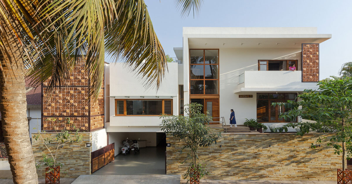 La vista frontal revela una tranquila interacción de volúmenes sólidos y abiertos | Todas las imágenes son cortesía de Suryan y Dang.