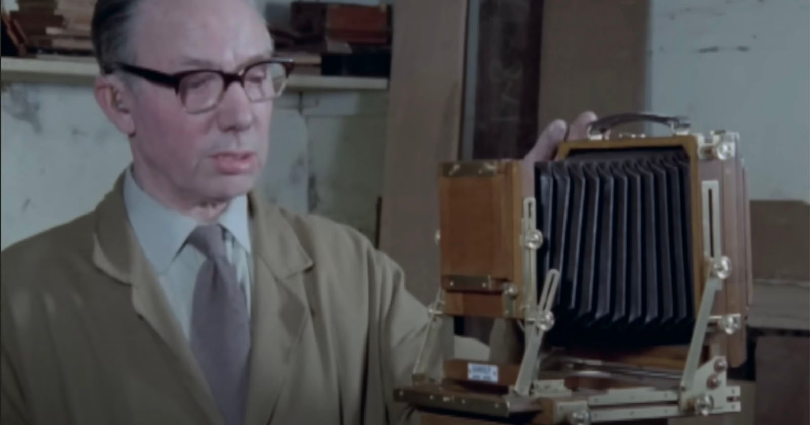 Película de archivo muestra al excéntrico británico fabricando una cámara de gran formato hecha a mano