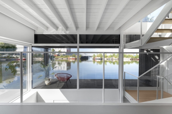 Los huecos de las escaleras y los pozos de luz se organizan alrededor de un atrio central, lo que permite conexiones verticales entre los pisos y vistas cambiantes a través del volumen.